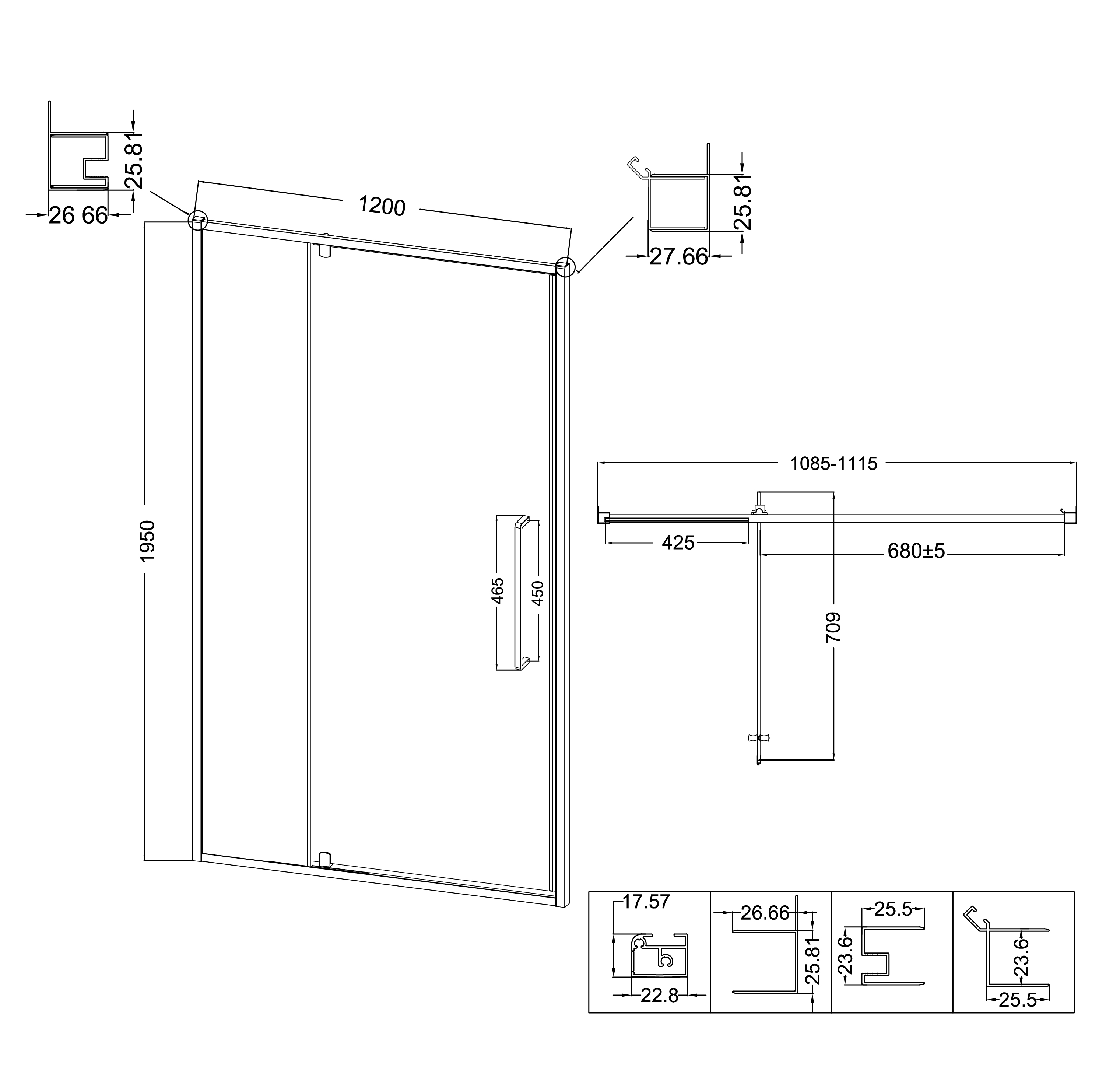 Дверь в нишу распашная Niagara Nova 120 см золото сатин/прозрачное NG-45-12ASG