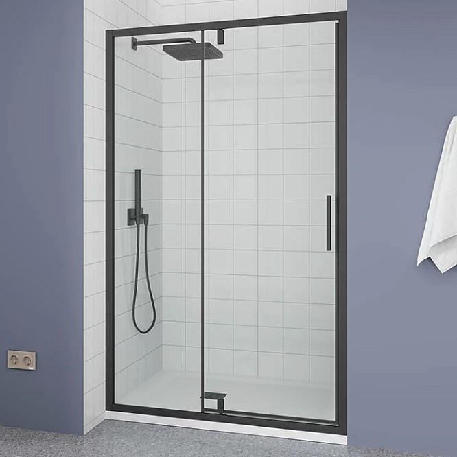 - Дверь в нишу распашная Veconi Ottimo P20 B 120х190 см черный матовый/прозрачное OP20B-120-01-C9