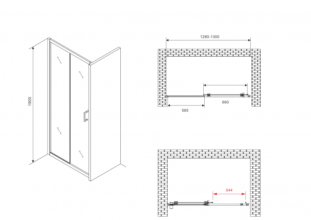 | Конструкция | 1 раздвижная/ вход 54,4 см |