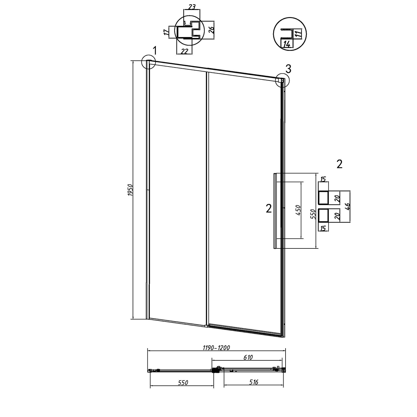 | Конструкция | 1 раздвижная/ вход 51,6 см/ ориентация универсальная |