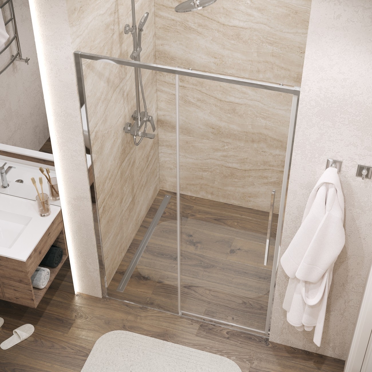 | Конструкция | 1 раздвижная/ вход 56,6 см/ ориентация универсальная |