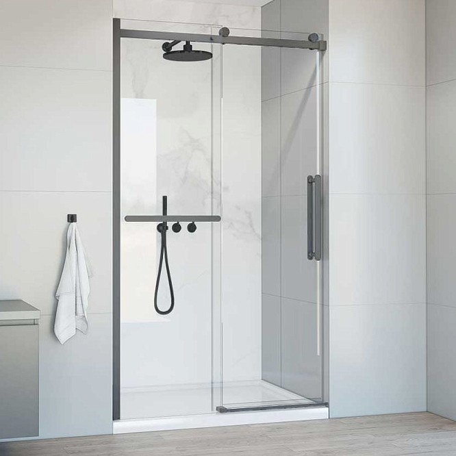 Дверь в нишу раздвижная Vincea Como Soft 130 см вороненая сталь/прозрачное VDS-1CS130CLGM