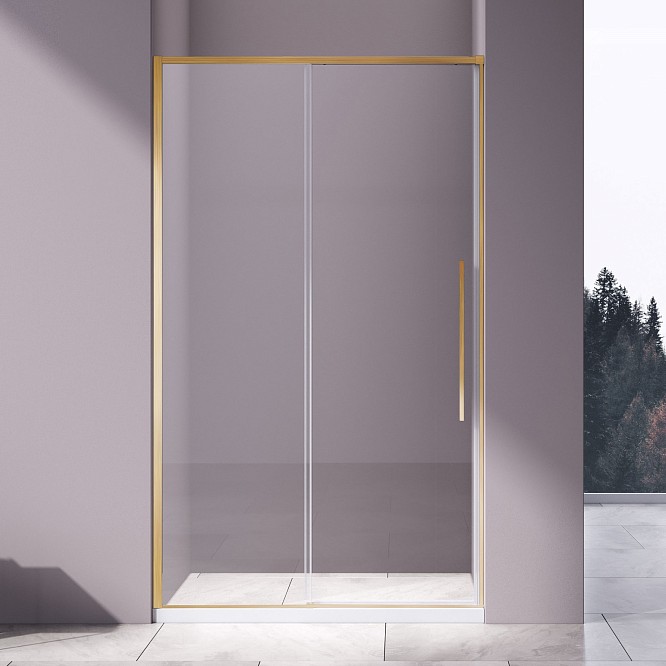 - Дверь в нишу раздвижная Vincea Slim-N 130 см браш золото/прозрачное VDS-4SN130CLG