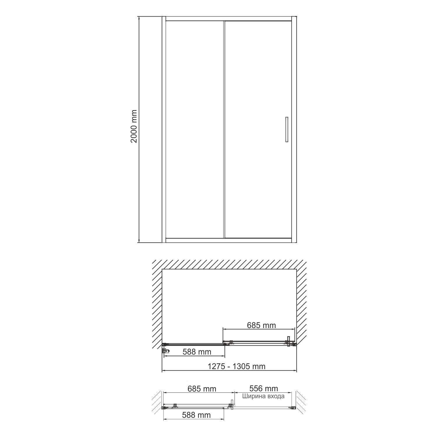 Дверь в нишу раздвижная WasserKRAFT Main (130х200) серебристый/прозрачное 41S30