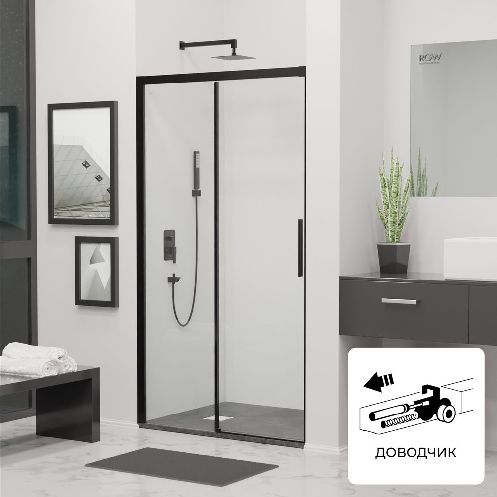Дверь в нишу RGW Leipzig LE-12B 130x195 см черный/прозрачное 34121213-14