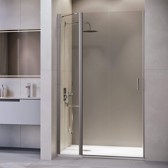 Распашная дверь в нишу RGW Leipzig LE-004Gr 130x195 см серый/ прозрачное 351200413-110
