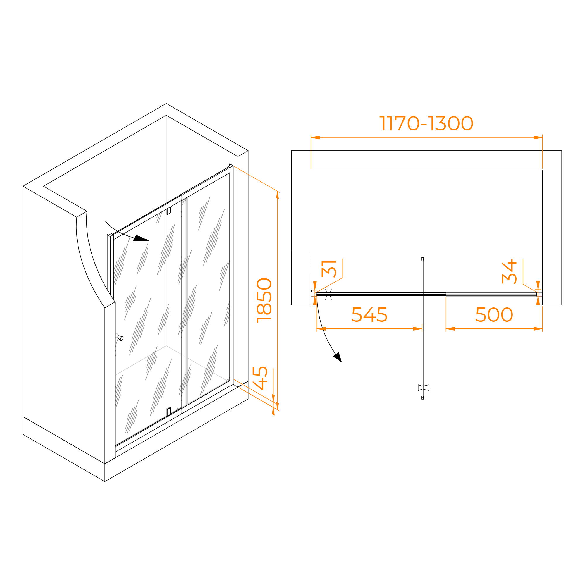 Профиль двери выполнен из хромированного алюминия и надежно крепится на месте, что обеспечивает герметичность на уровне первого класса. Распашная конструкция дверей позволит вам комфортно использовать ванную комнату и легко обслуживать дверь.