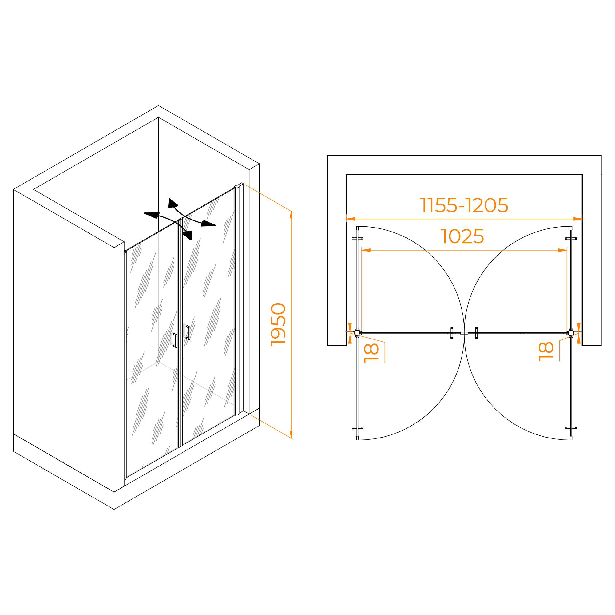 | Конструкция | Распашная (2), ширина входа 102,5 см |