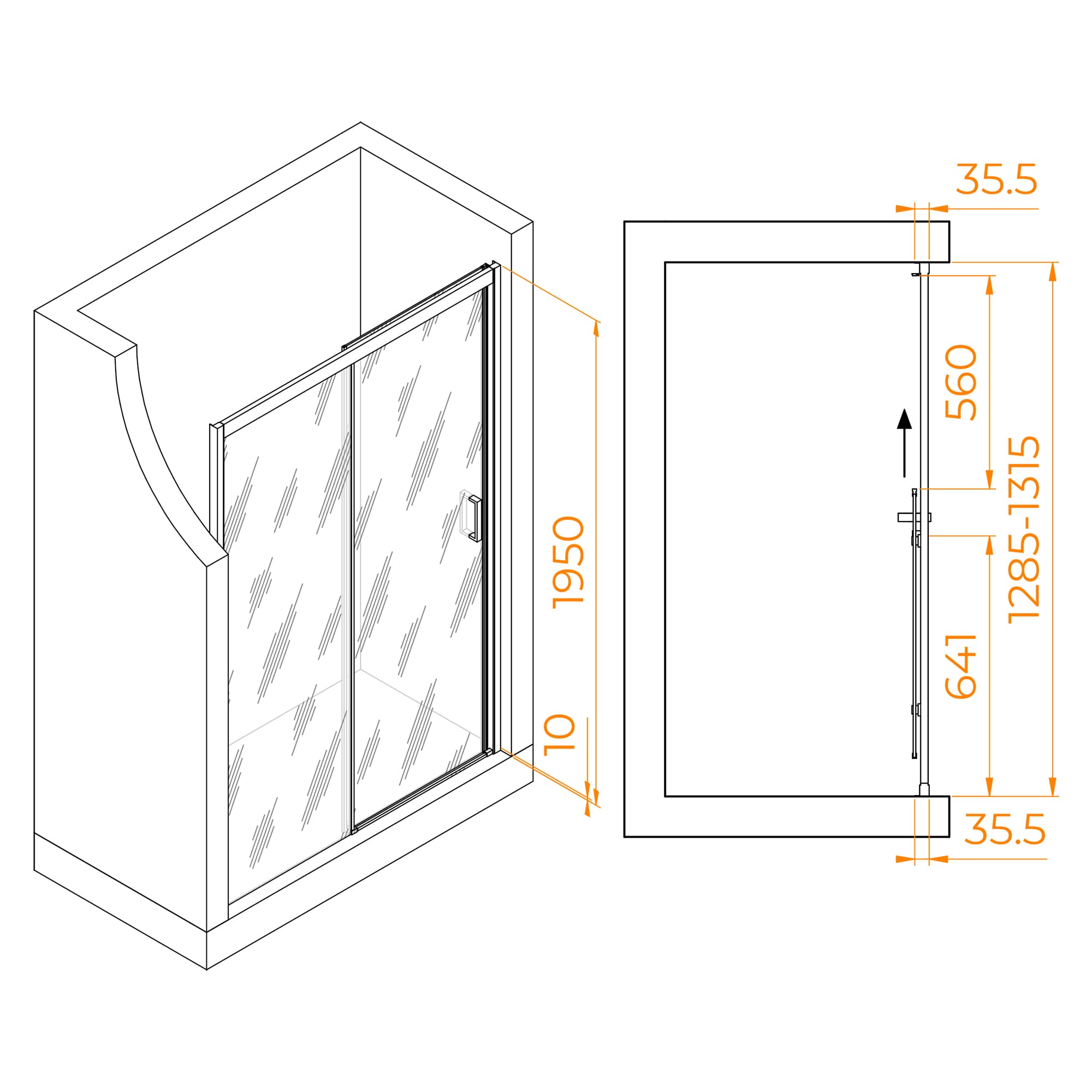 | Конструкция | 1 раздвижная/ вход 56 + стенка 64,1 см |