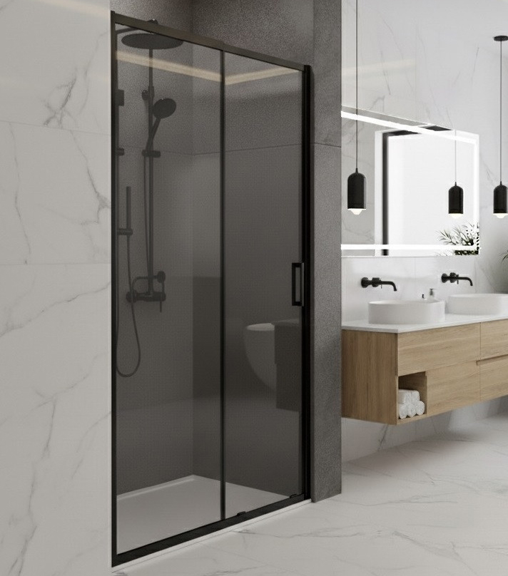 Душевая дверь раздвижная CeramaLux 130-140х190 см черный матовый/прозрачное CL307B-1314 Matt Black
