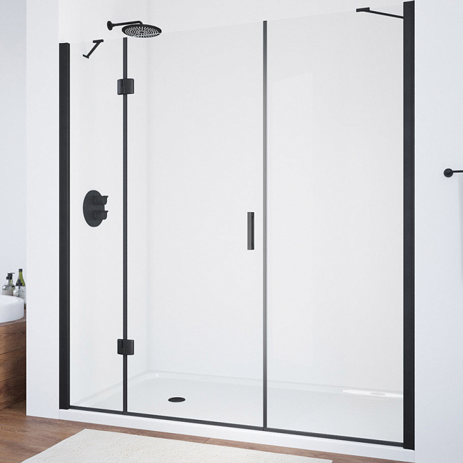 Душевая дверь Vegas-Glass AFP-F NOVO 140х189 см черный матовый/стекло разное
