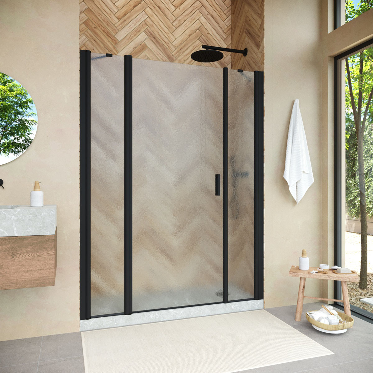 Душевая дверь Vegas-Glass EP-2F NOVO 150х189 см черный матовый/стекло разное