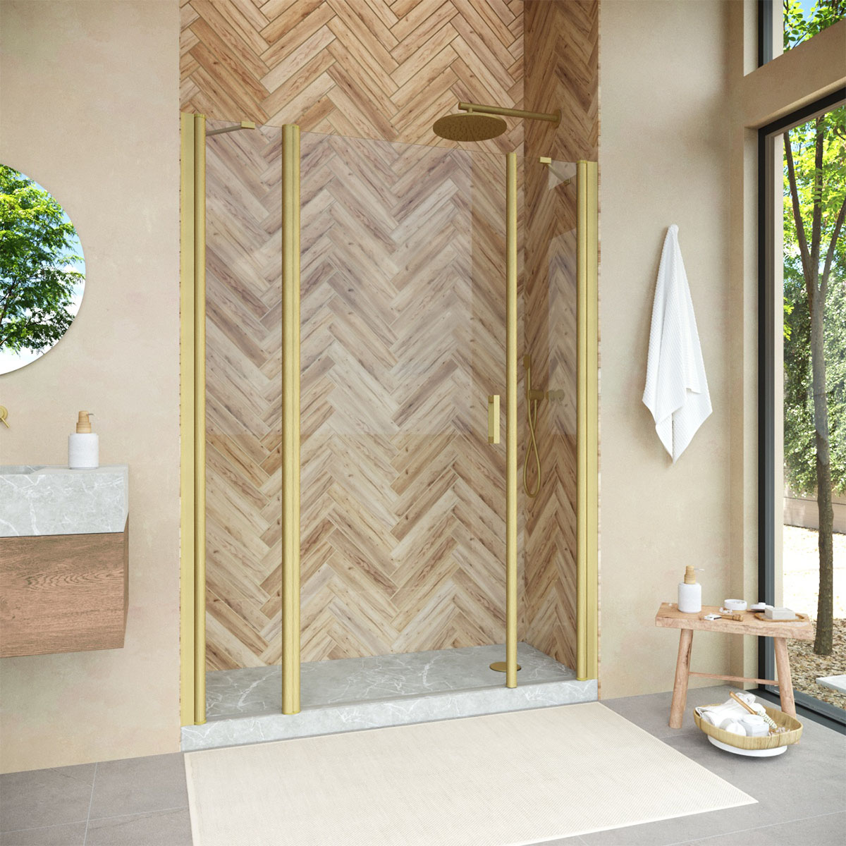 Душевая дверь Vegas-Glass EP-2F NOVO 150х189 см золото матовое/стекло разное