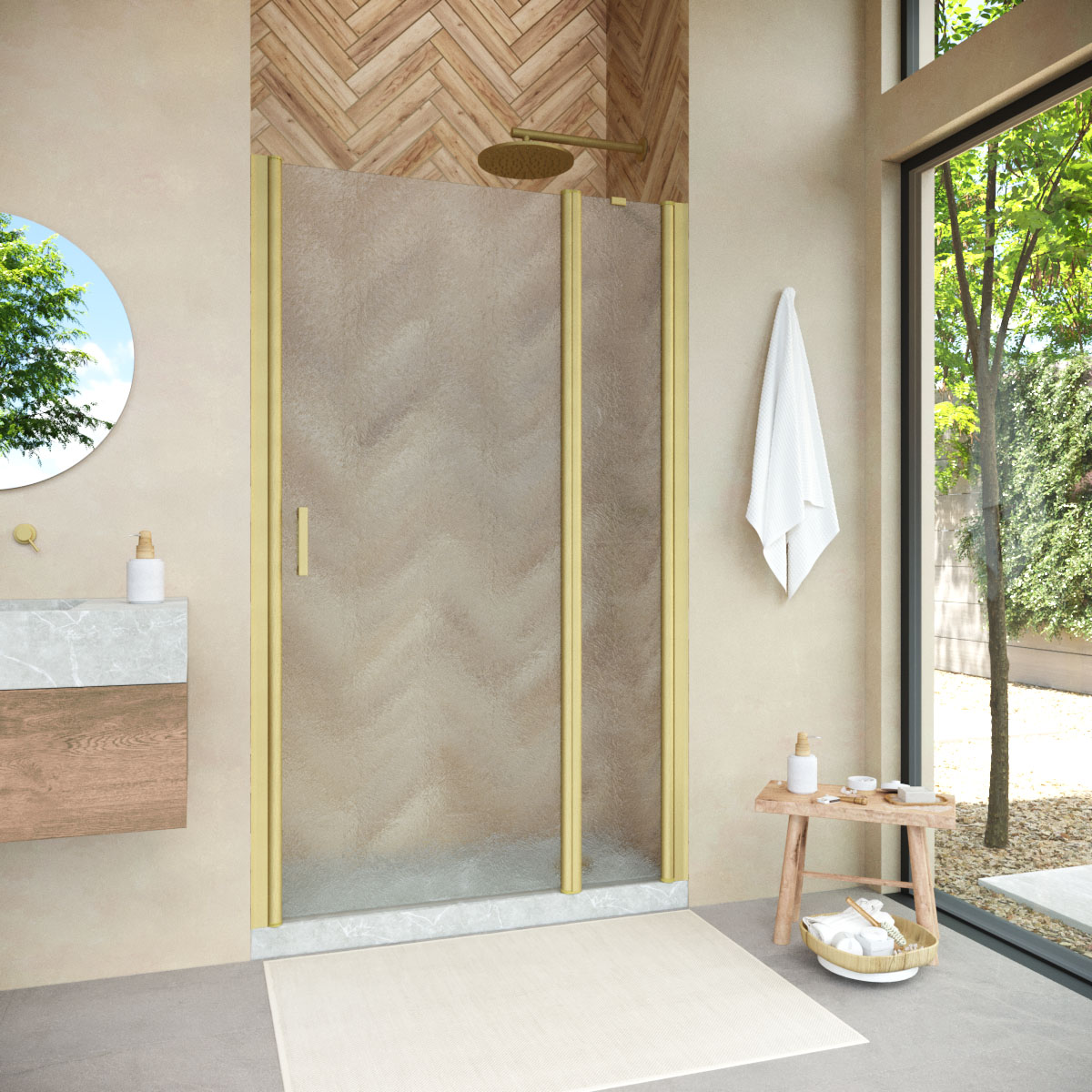Душевая дверь Vegas-Glass EP-F-1 NOVO 155х189 см золото матовое/стекло разное