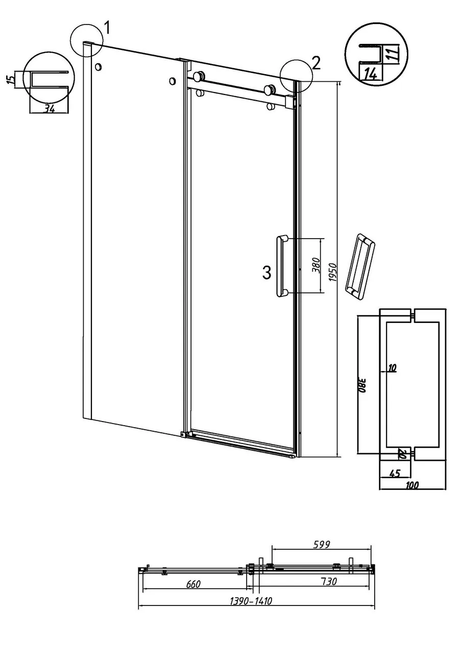 | Конструкция | 1 раздвижная, вход 59,9 см |