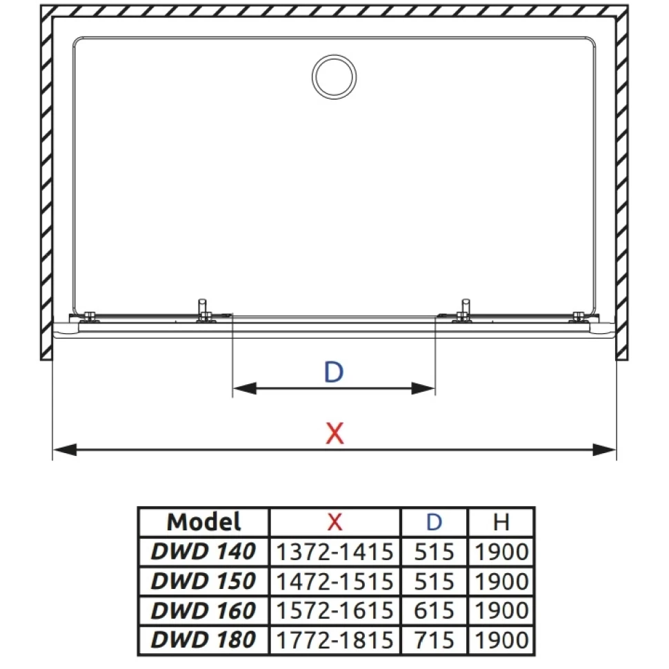 Двустворчатая раздвижная дверь в нишу. Разрешается устанавливать как на поддоны, так и непосредственно на пол.