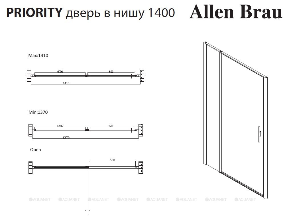 - Дверь в нишу распашная Allen Brau Priority 140х200 см серебро браш/прозрачное 3.31011.BA (256519)
