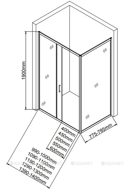 Дверь в нишу раздвижная Aquanet SD-1400A 140х190 см хром/прозрачное 209408