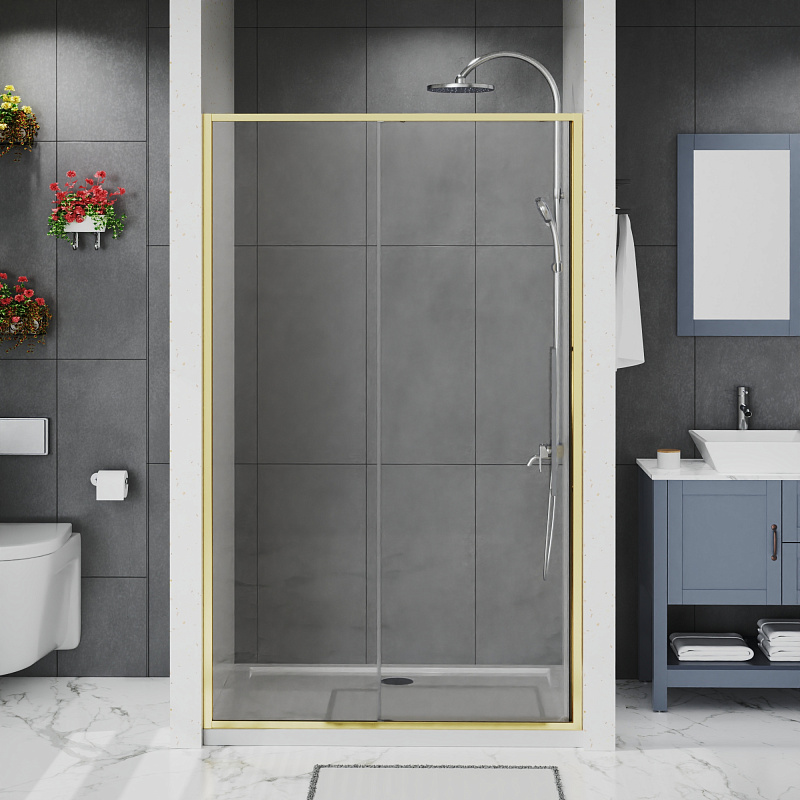 Дверь в нишу раздвижная Azario Shanghai AZ-Y43-150-BGL-CL (150х195 см) браш золото/прозрачное 00104798