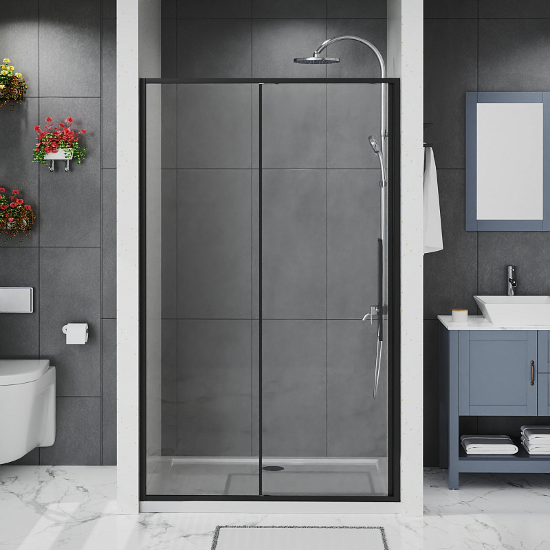 Дверь в нишу раздвижная Azario Shanghai AZ-Y43-150-MB-CL (150х195 см) черный матовый/прозрачное 00104773