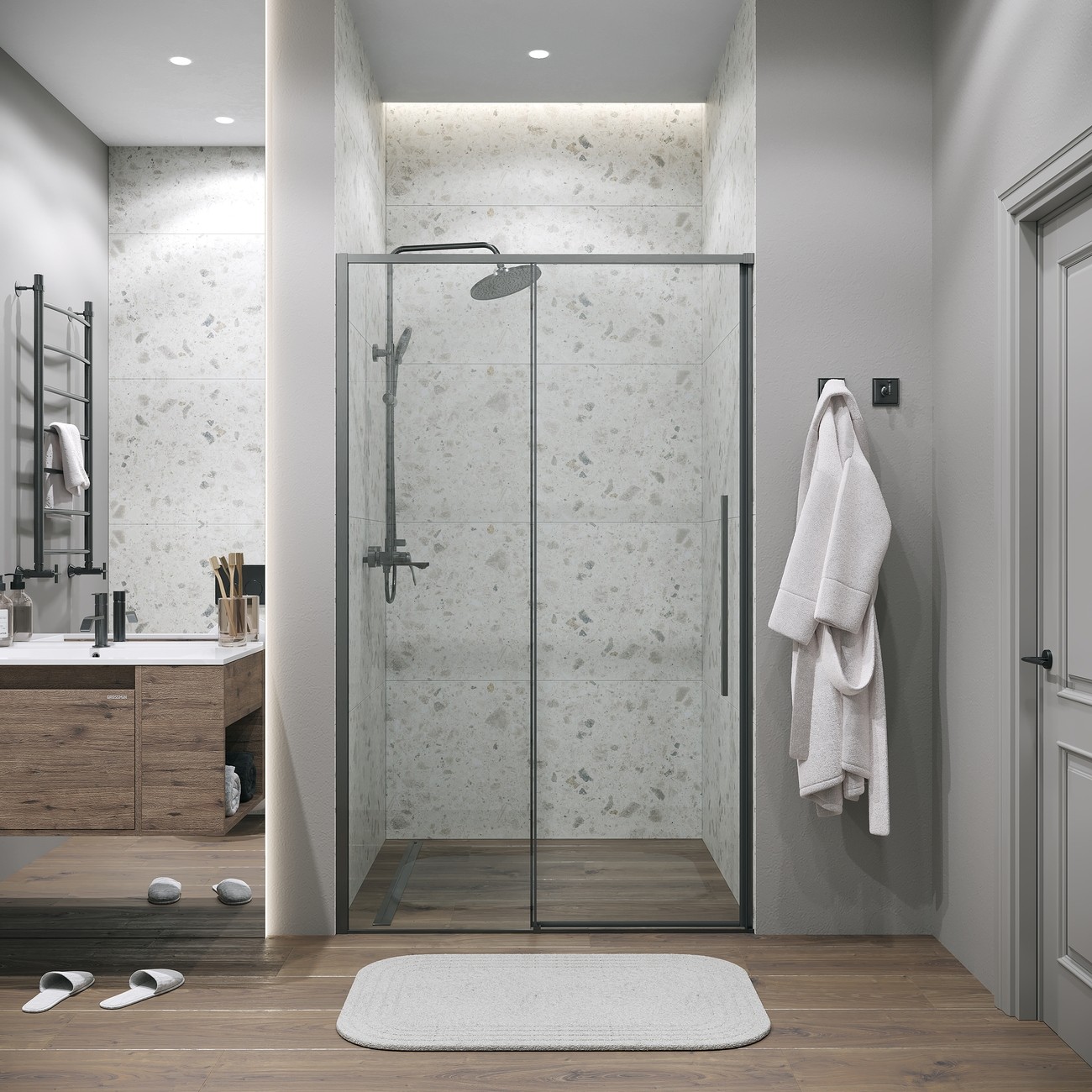 Дверь в нишу раздвижная Grossman Galaxy (140х195 см) графит сатин/прозрачное 100.K33.01.140.42.00