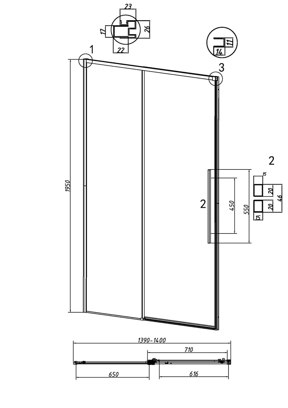 | Конструкция | 1 раздвижная/ вход 61,6 см/ ориентация универсальная |