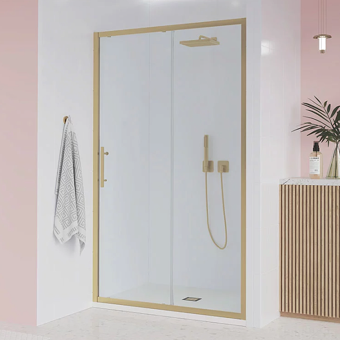 - Дверь в нишу раздвижная Veconi Evo 150х195 см золото брашинг/ прозрачное E1-G-150-01-C9