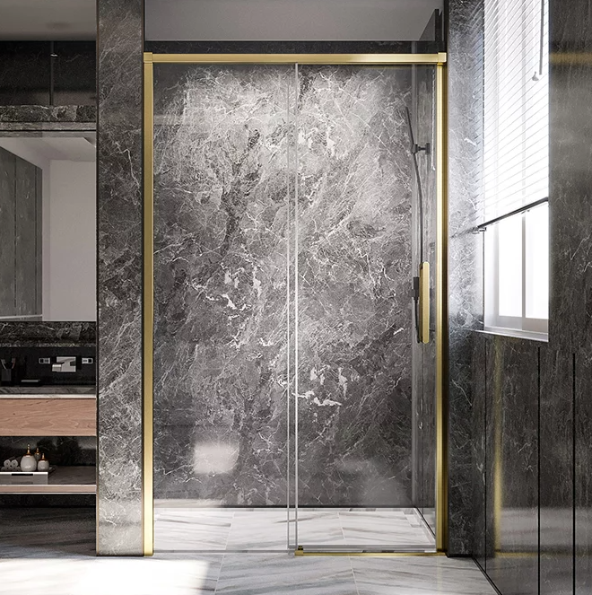 Дверь в нишу раздвижная Veconi Premium Trento 150х200 см золото браш/прозрачное PTD40-G-150-01-C4