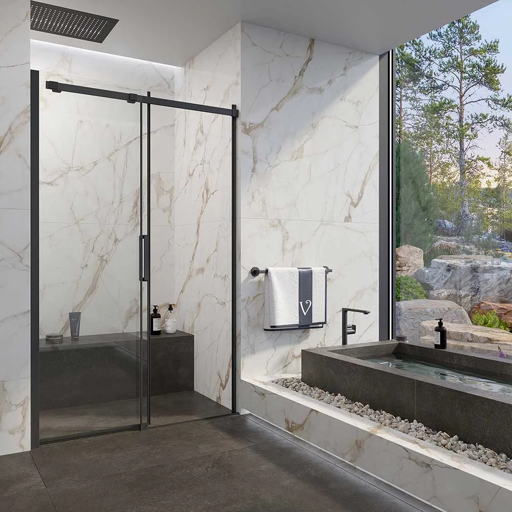 Дверь в нишу раздвижная Veconi Vianno VN-70B 150х195 см черный матовый/ прозрачное VN70B-150-01-C4