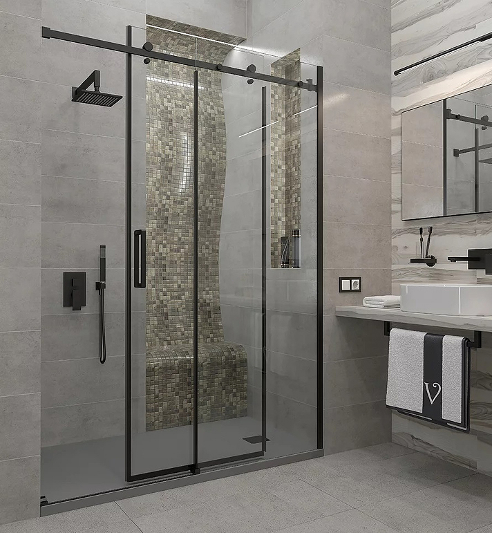 Дверь в нишу раздвижная Veconi Vianno VN-74B 140х195 см черный матовый/прозрачное VN74B-140-01-C4