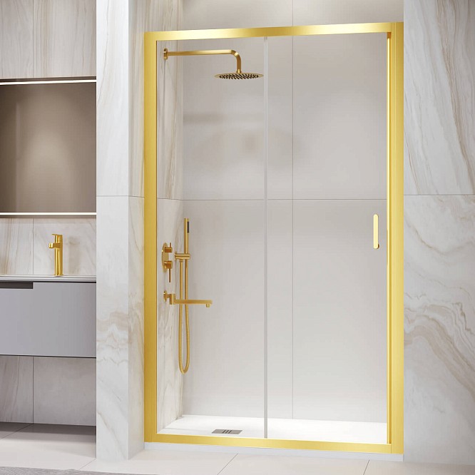 Высота общая двери составляет 1950 мм, а ее конструкция – раздвижная, что позволяет с комфортом использовать пространство в ванной комнате. Дверь имеет магнитный уплотнитель, обеспечивая первый класс герметичности и защищая ванную комнату от брызг воды.