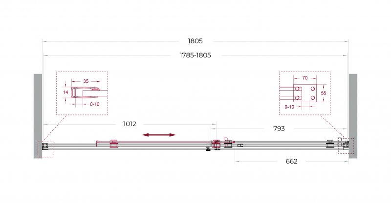 | Конструкция | Раздвижная, 1 секция двери, ширина входа 66,2 см |