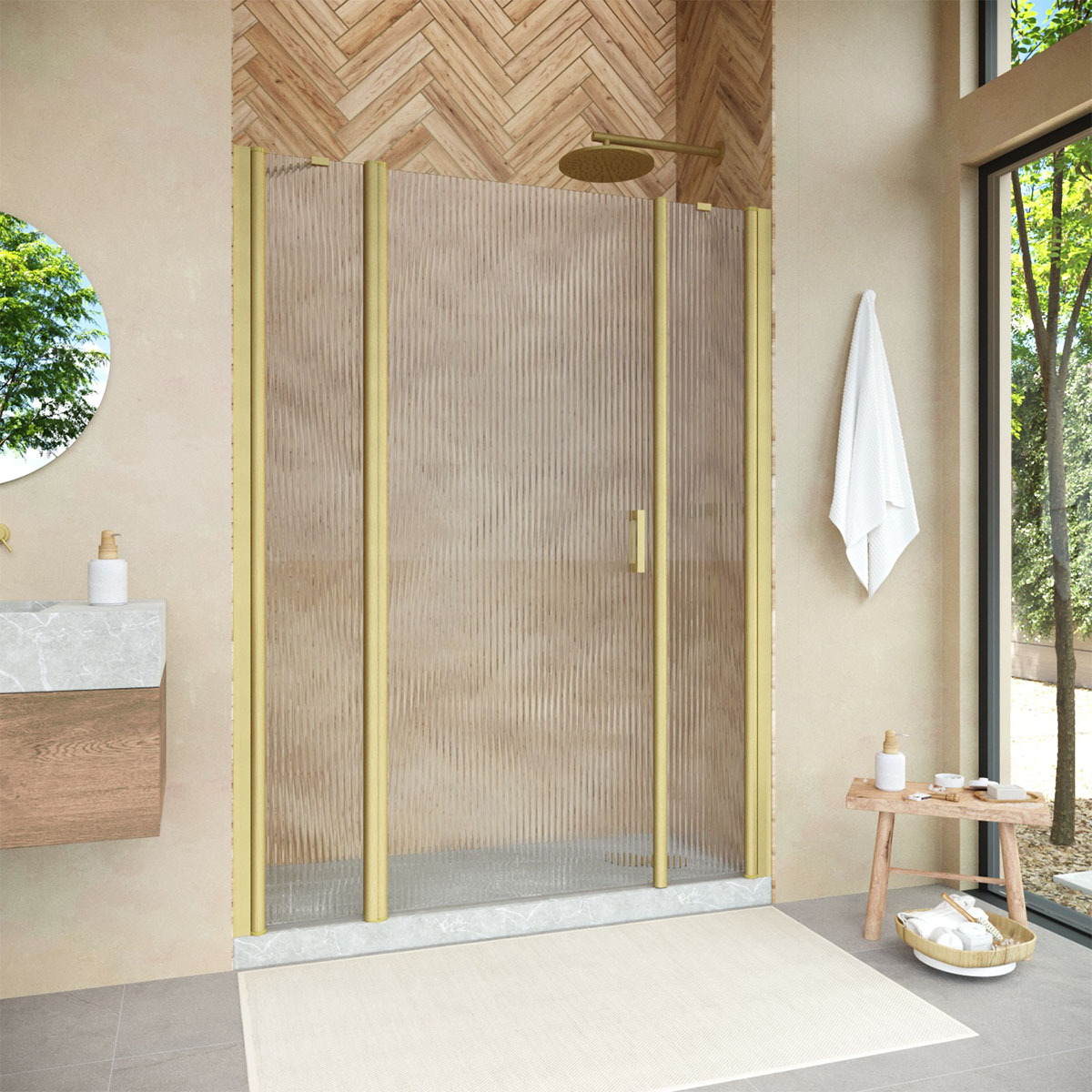 Душевая дверь Vegas-Glass EP-2F NOVO 160х189 см золото матовое/стекло разное