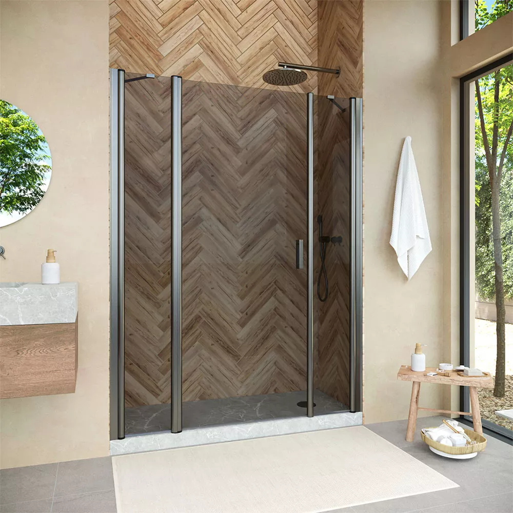 Душевая дверь Vegas-Glass EP-2F NOVO 170х200 см оружейная сталь/стекло разное