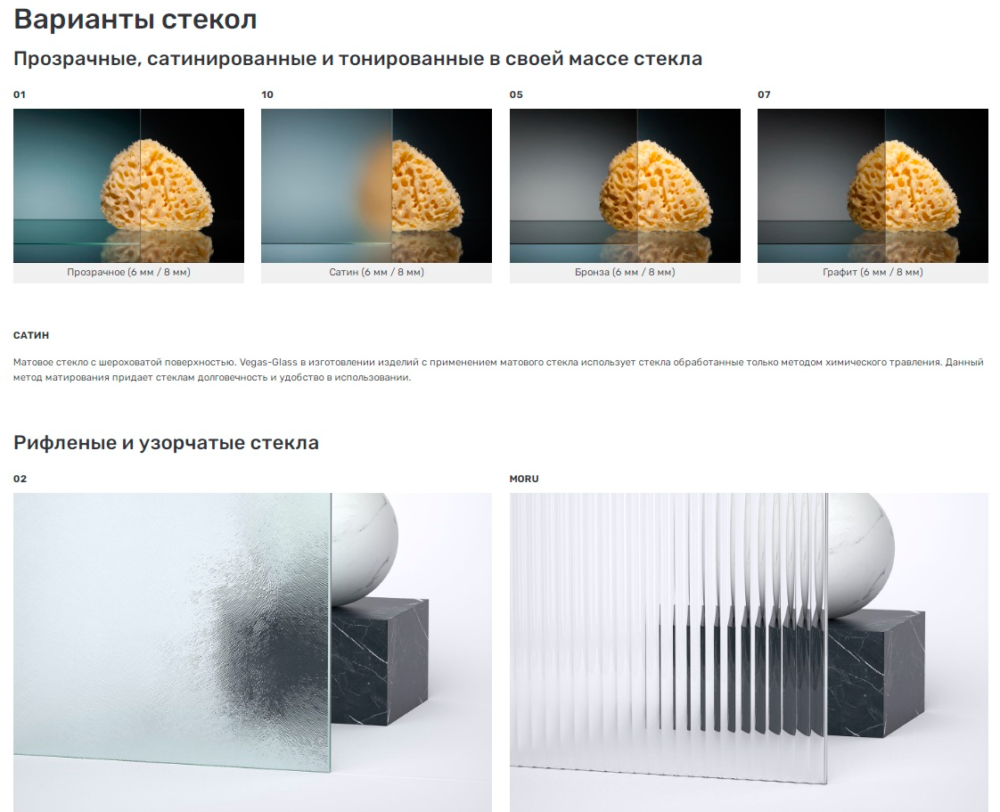 | Цвет стекла | Прозрачное, Матовое, Текстурное/рельефное, Тонированное/графит |