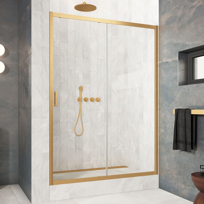 Душевая дверь Vegas-Glass ZP Protec 160х200 см золото матовое/стекло разное