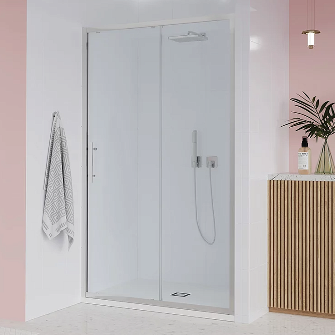 - Дверь в нишу раздвижная Veconi Evo 180х195 см хром/ прозрачное E1-CH-180-01-C9