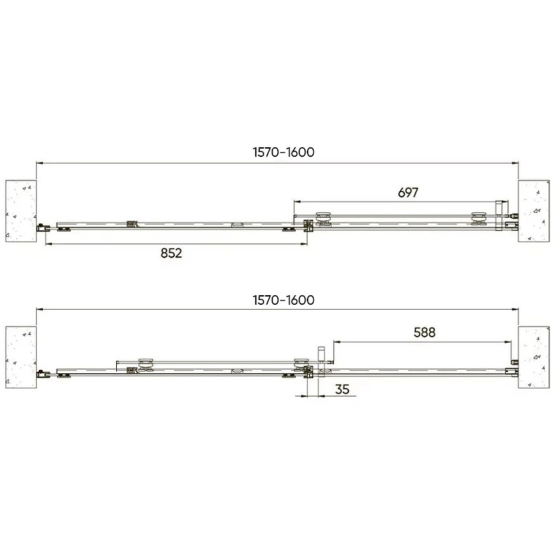 Раздвижная дверь и одно неподвижное стекло