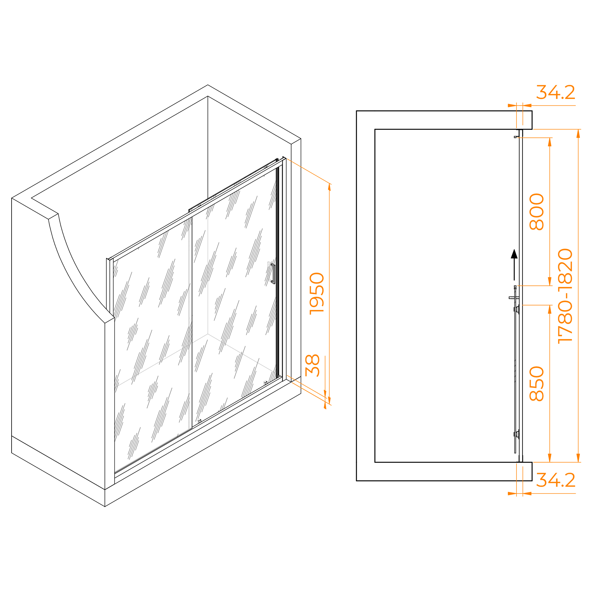 Высота общая двери составляет 1950 мм, а ее конструкция – раздвижная, что позволяет с комфортом использовать пространство в ванной комнате. Дверь имеет магнитный уплотнитель, обеспечивая первый класс герметичности и защищая ванную комнату от брызг воды.