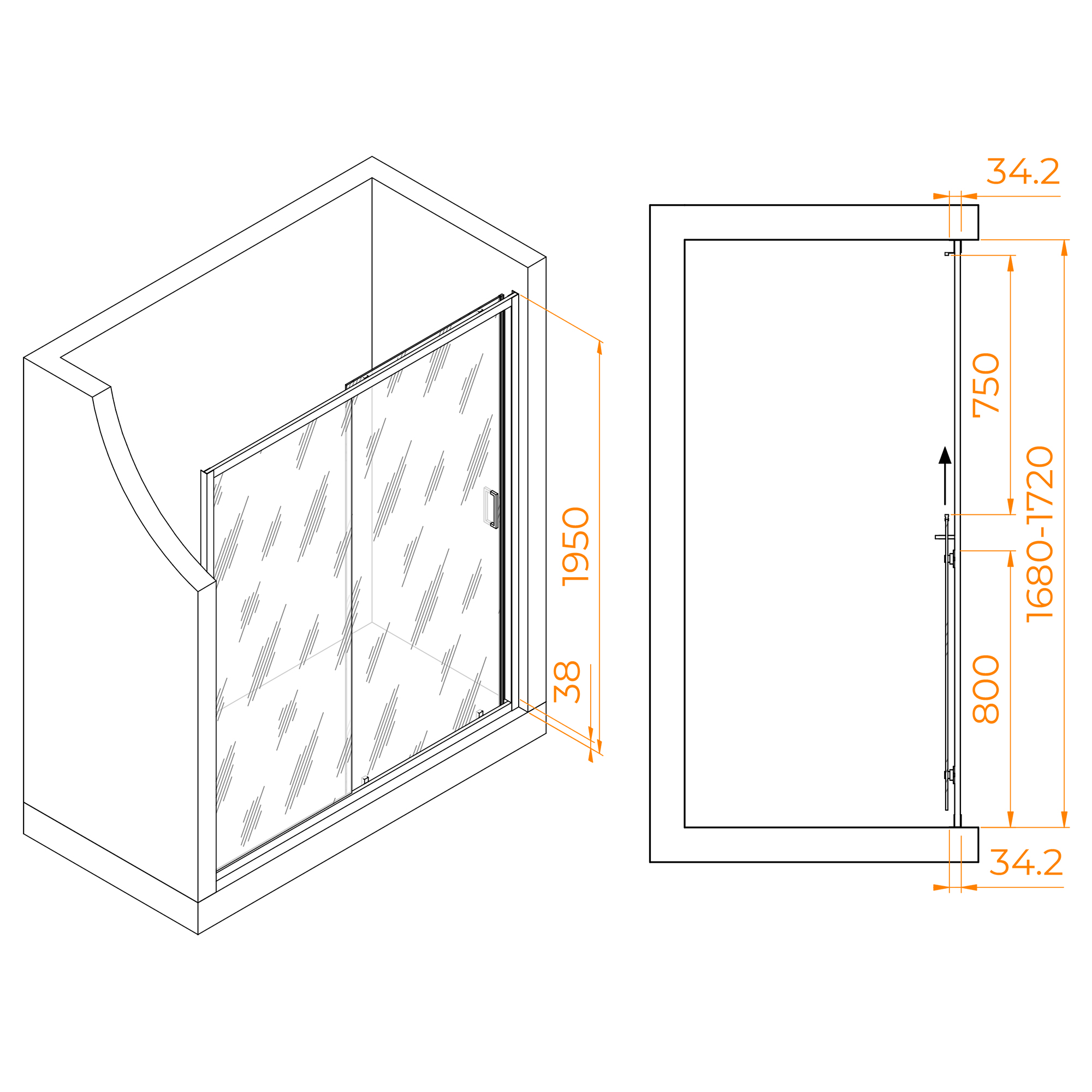 | Конструкция | Раздвижная, ролики верх/низ, ширина входа 75 см |