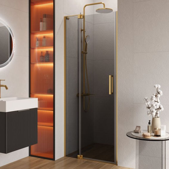 - Дверь в нишу распашная Cezares Slider B-1 70-80 см золото браш/серое SLIDER-B-1-70/80-GRIGIO-BORO