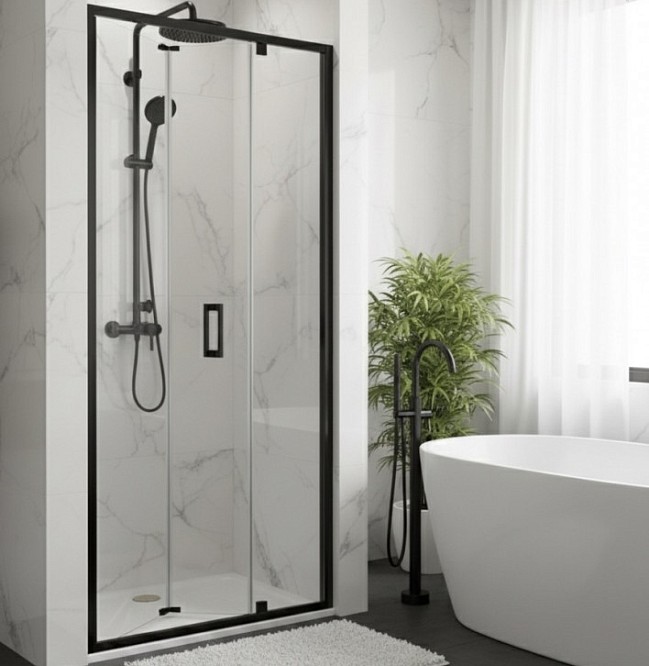 Душевая дверь сдвижная CeramaLux 90х190 см черный матовый/прозрачное CL935B-90
