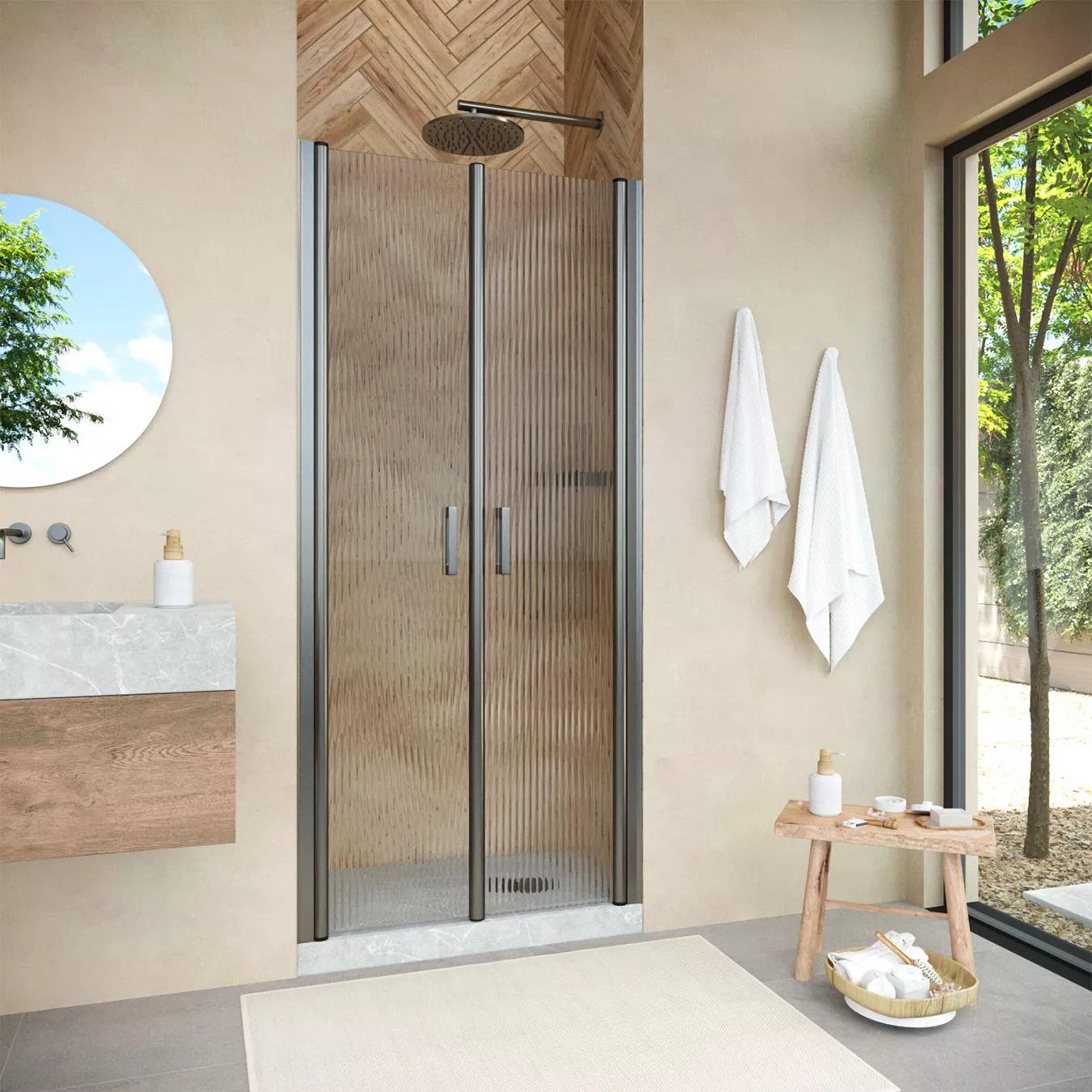Душевая дверь Vegas-Glass Е2Р NOVO 85х200 см оружейная сталь/стекло разное