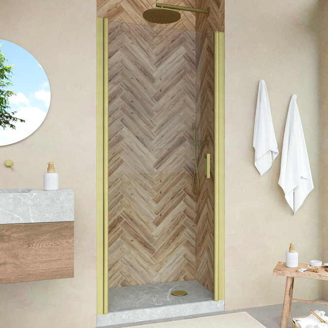 Душевая дверь Vegas-Glass EP NOVO 80х189 см золото матовое/стекло разное