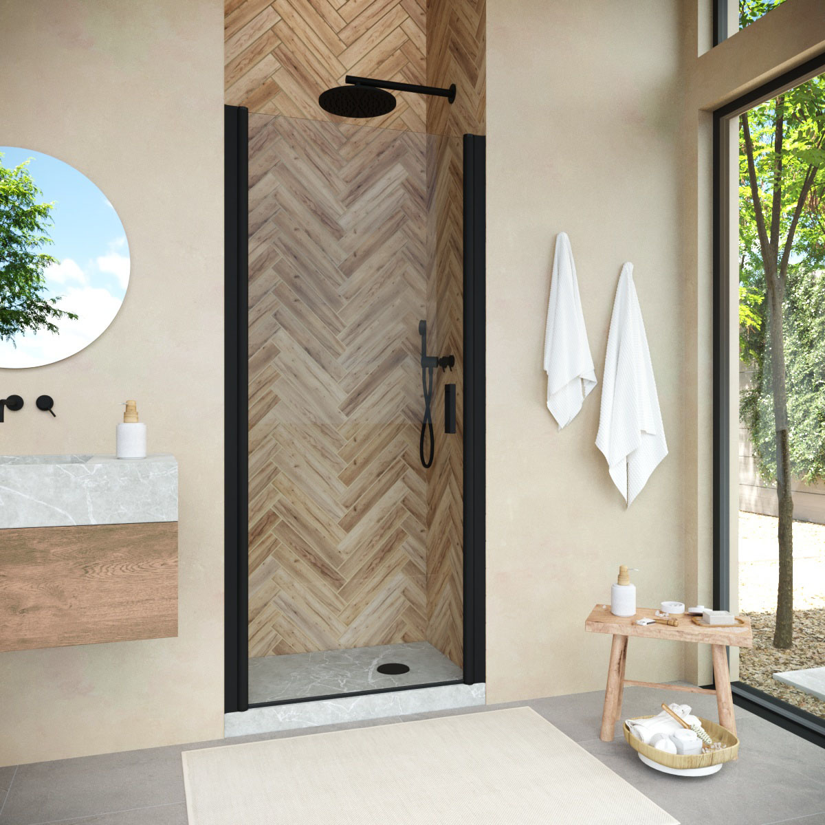 Душевая дверь Vegas-Glass EP NOVO 85х189 см черный матовый/стекло разное