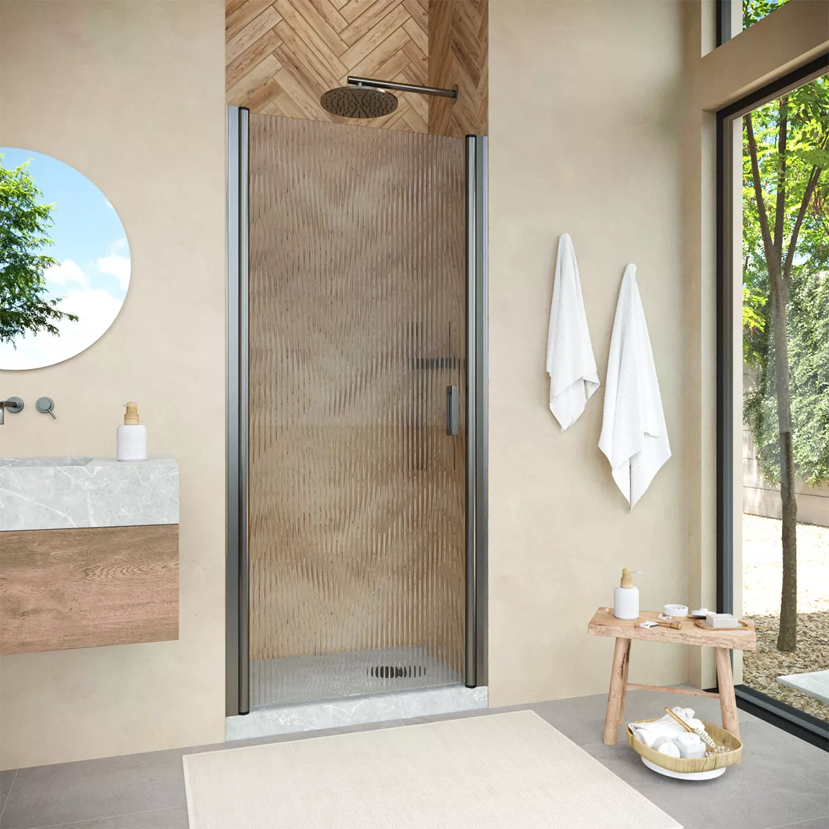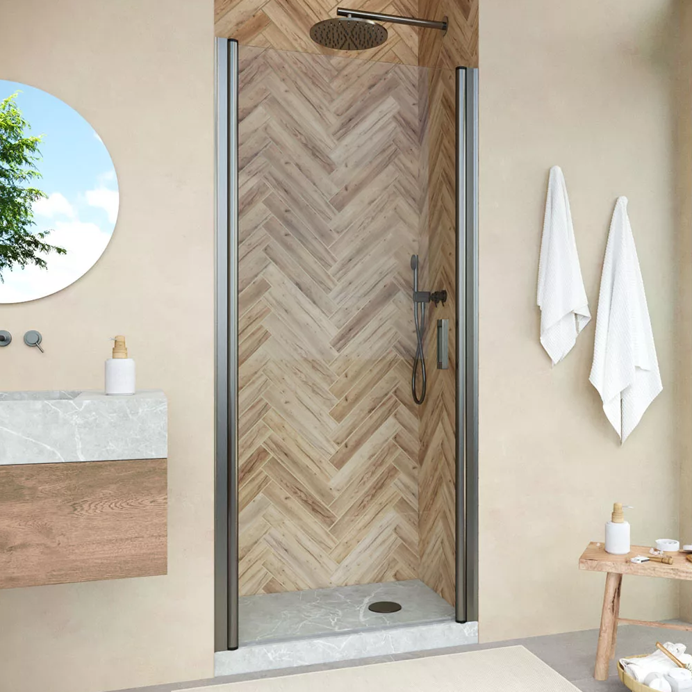 Душевая дверь Vegas-Glass EP NOVO 85х200 см оружейная сталь/стекло разное