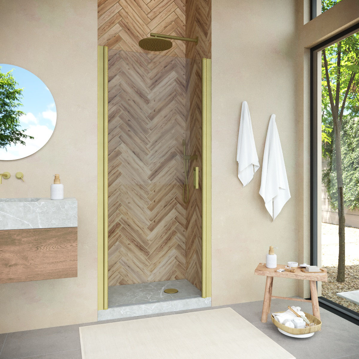 Душевая дверь Vegas-Glass EP NOVO 85х200 см золото матовое/стекло разное