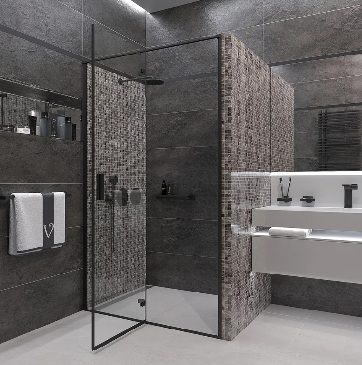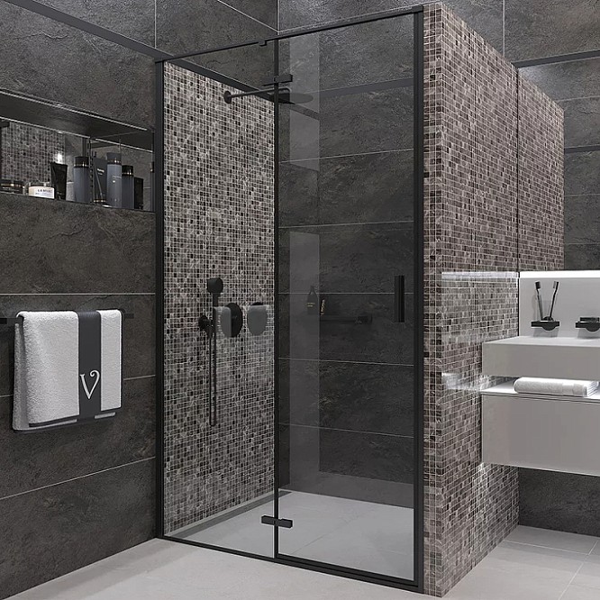 Дверь в нишу распашная Veconi Vianno VN-73B 80х195 см черный матовый/прозрачное VN73B-80-01-C4