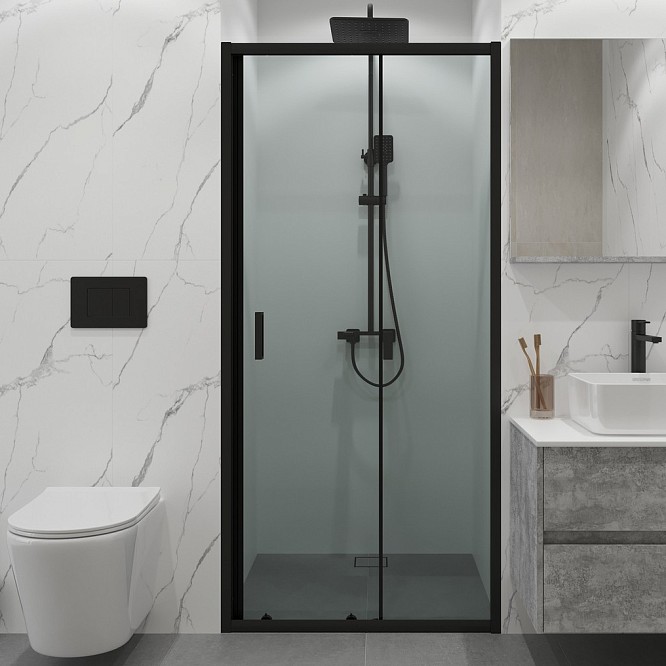 Дверь в нишу раздвижная Niagara Eco 90 см черный матовый/прозрачное NG-651-9AB