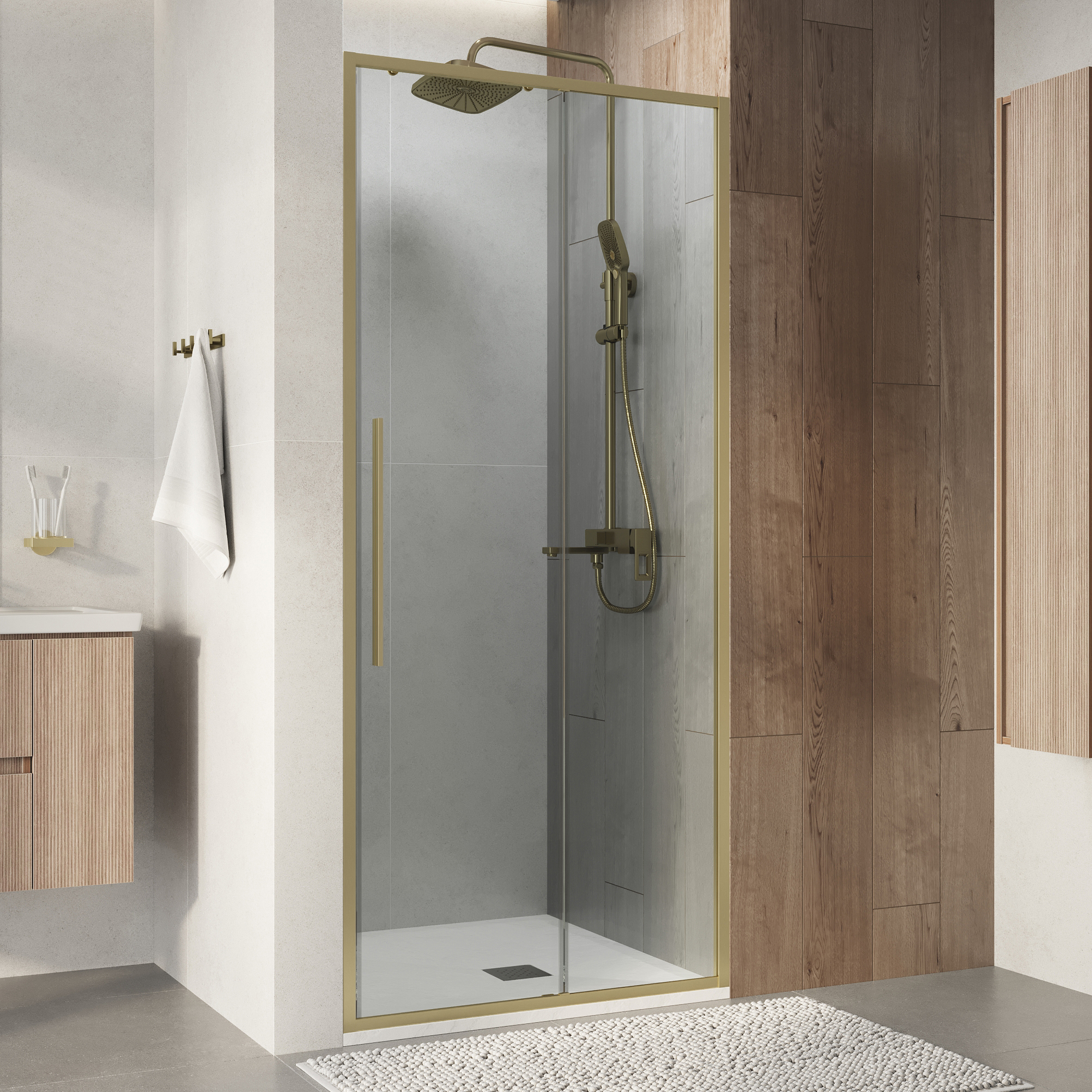 Дверь в нишу раздвижная Niagara Nova 90 см золото сатин/прозрачное NG-44-9ASG